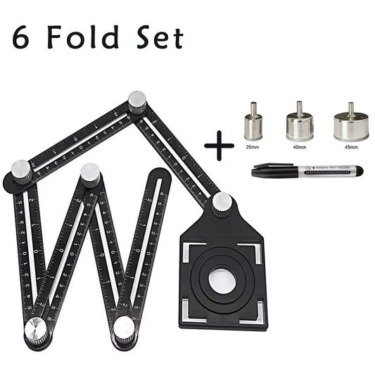 6 Fold Set Construction Angle Measuring Ruler Aluminum Alloy Perforated Mold Template Tool Locator Drill Guide Tile Hole